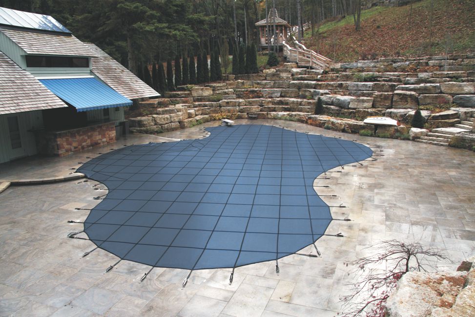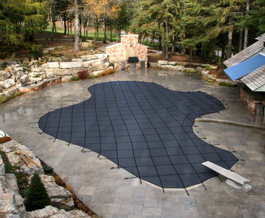 A strong mesh is stretched across the pool and is anchored into the deck with special anchors. The exact measurement of the pool is necessary for this type of cover. Any obstructions (ie steps, ladders, waterfalls etc) within 18″ of the waters edge must be accounted for with this type of cover.[tabbyending]