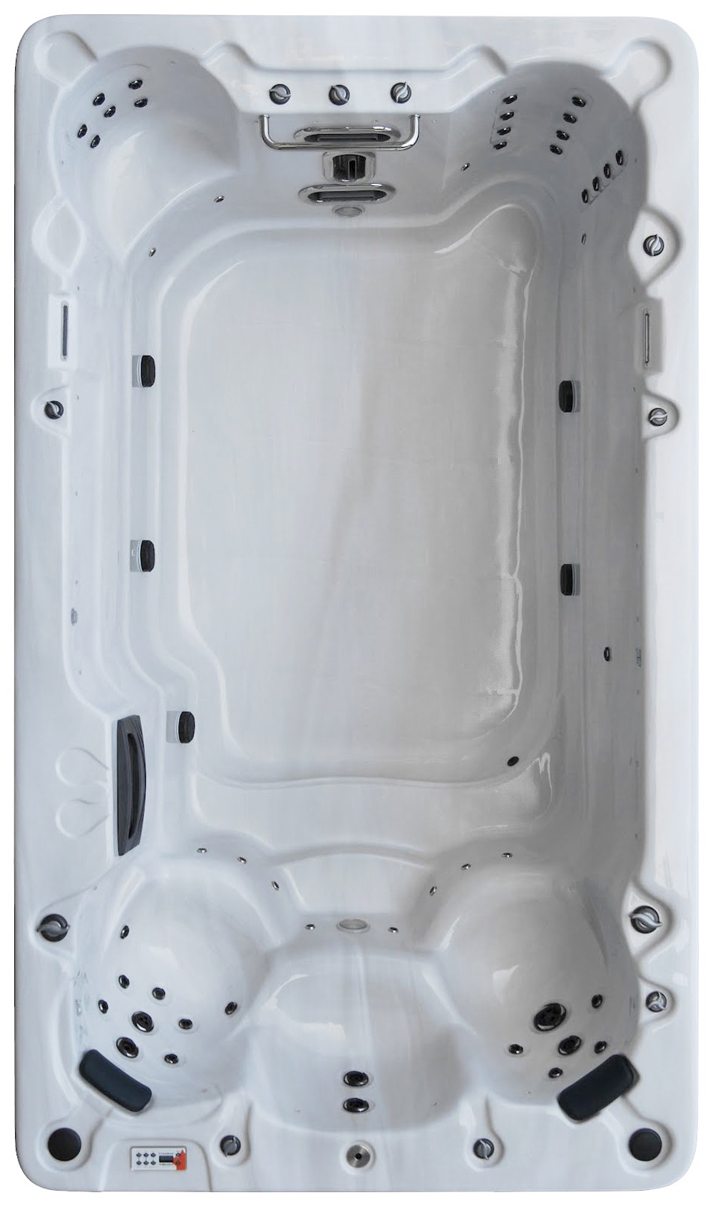The SS 13′ Swim Spa Hot Tub provides you the very best in aqua fitness. The unique jet system provides controllable resistance for swimming and aqua aerobics.  This swim spa allows you to relax and enjoy on of five therapeutic areas including a stand-up massage area.